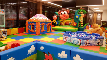 Выездные игровые зоны давно уже стали одним из узнаваемых брендов нашей компании. У нас есть игровые зоны по самым разным тематикам: Джунгли и Космос, Принцессы и Пираты, Арктика и Мастерская Деда Мороза. Среди наших предложений есть комплексные игровые зоны или детские уголки, а есть и возможнось подбора элементов и аттракционов детской игровой зоны под заказ. Для одного из наших постоянных клиентов мы собрали игровую зону с развлечениями для детей самого разного возраста. Здесь был и надувной батут, и детская каруселька с механическими качалками, и большой бассейн с шариками, и детский скалодром, и кран-машина с игрушками, и интерактивная песочница. яркий красочный мягкий забор оформлял площадку около 150 кв.метров, где специально был выстелен мягкий пол для безопасности детей и привлекательности игрового пространства.