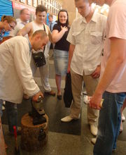 Тссс! Слышите этот сказочный звон? Это кузнец пересыпает в ладонях только что выкованные монетки. Хотите попробовать самостоятельно сделать такую? Тогда Монетный двор к Вашим услугам! Вы сможете, вооружившись молотом и наковальней, преобразовать металл во множество волшебных денежек, которых хватит всем гостям Вашего праздника! На Монетном дворе папы смогут показать свою силу, а малыши восхитятся тем, что самостоятельно могут сделать необычный сувенир!